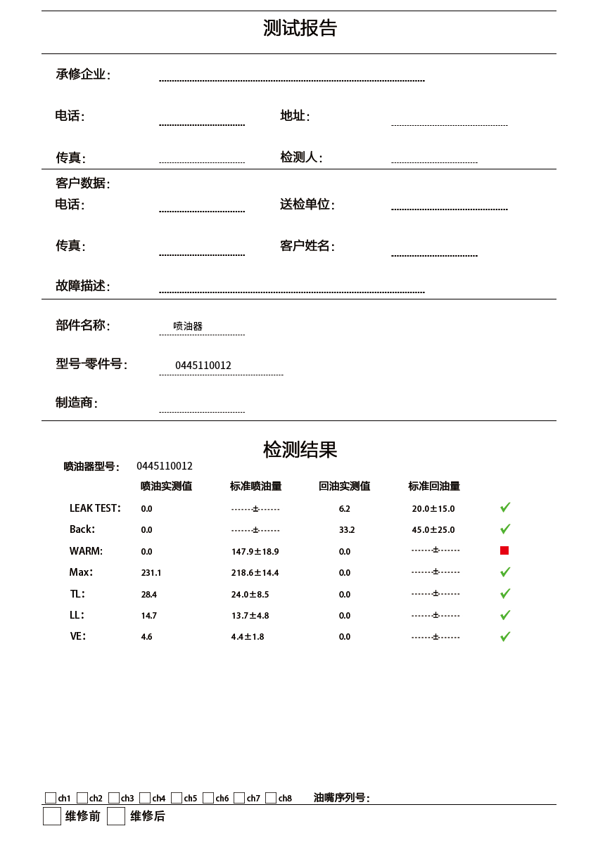 As crdieselpump.com has a mature business system, we are able to satisfy our customer’s many requirements, including providing professional test reports before the pumps are sent out to our customers, the report content contains every working condition and data of the pump such as precision, high temperature, low temperature, withstand pressure, leakage, and durability to show if each test value meets working demands.